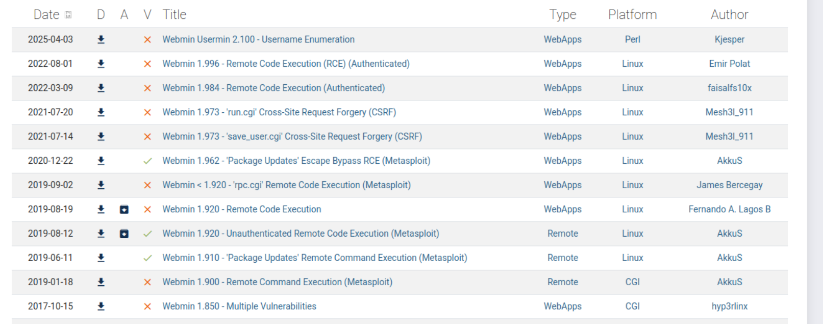 Lets go to https://www.exploit-db.com/ and search webmin.